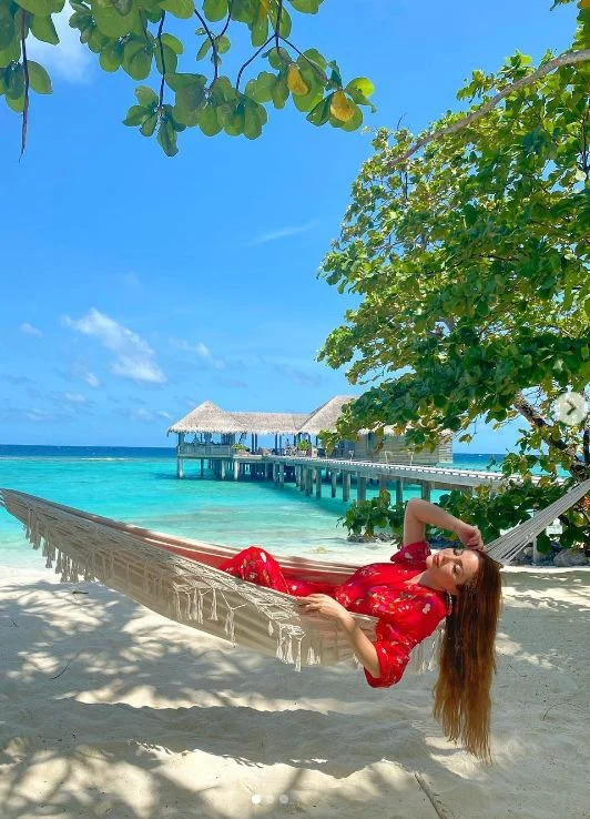 / نسرين طافش جزر المالديف : نسرين طافش تستمتع بوقتها في المالديف - Barcha.net - وظهرت نسرين وهي مستلقية على أرجوحة أمام الشاطئ بفستان أحمر طويل، وتركت شعرها منسدلاً ما أضفى على إطلالتها.
